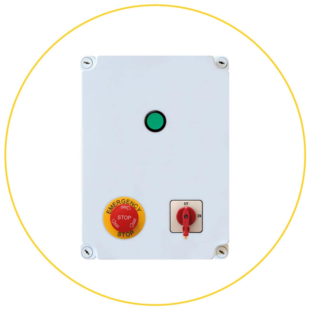 Inverter con logica integrata con pulsante start, pulsante a fungo stop e interruttore sezionatore.